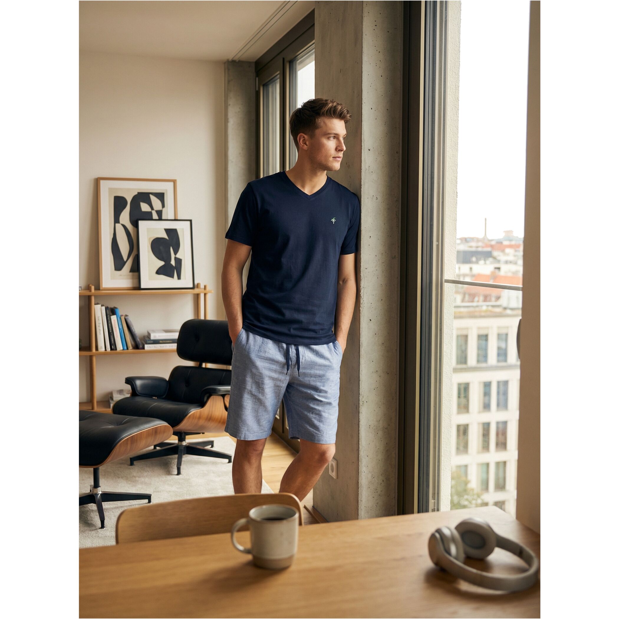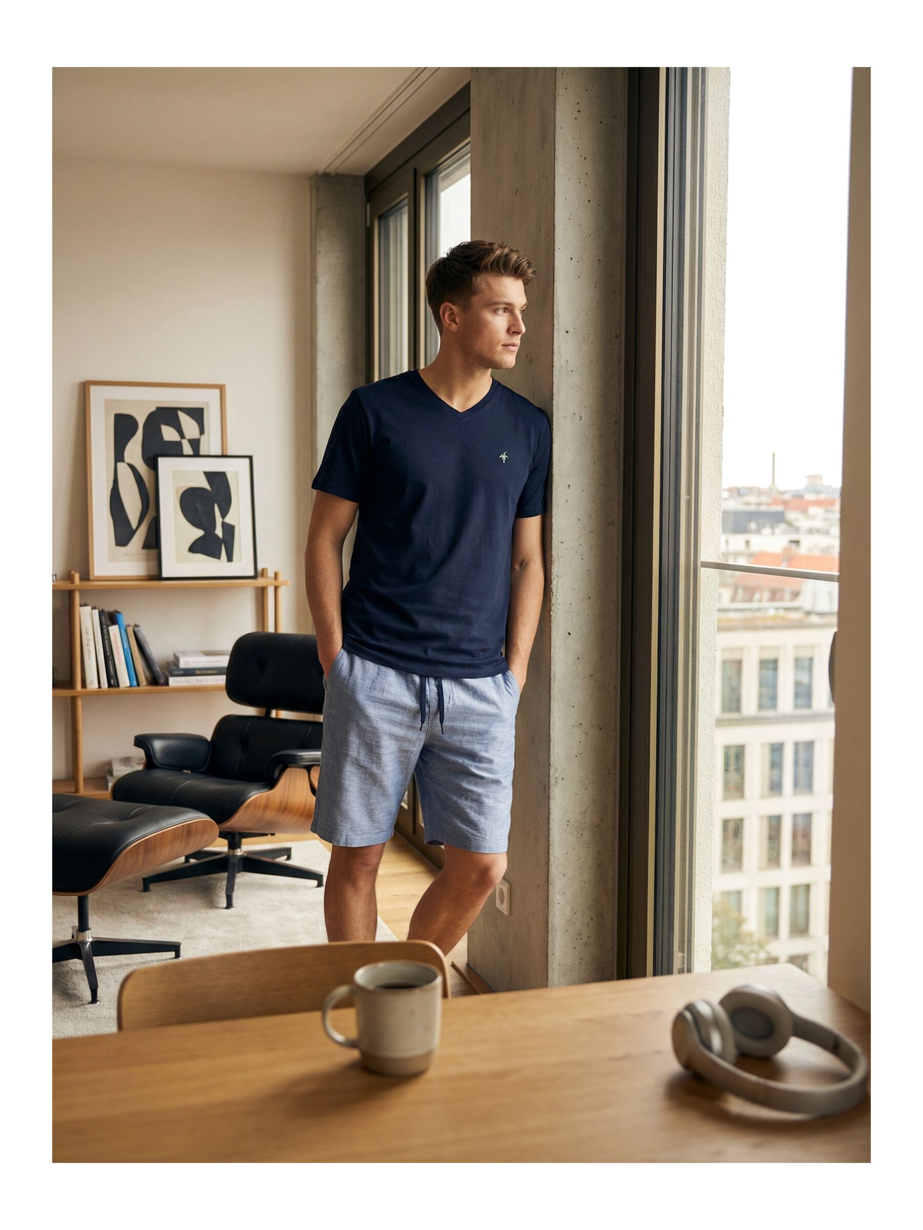 Der Phil & Co. Berlin Herren Pyjama verbindet modisches Design mit hohem Komfort. Das Shorty Set mit klassischem V-Ausschnitt überzeugt durch moderne Prints und stilvolle Farbverläufe – perfekt abgestimmt auf die Frühjahr/Sommer-Saison.