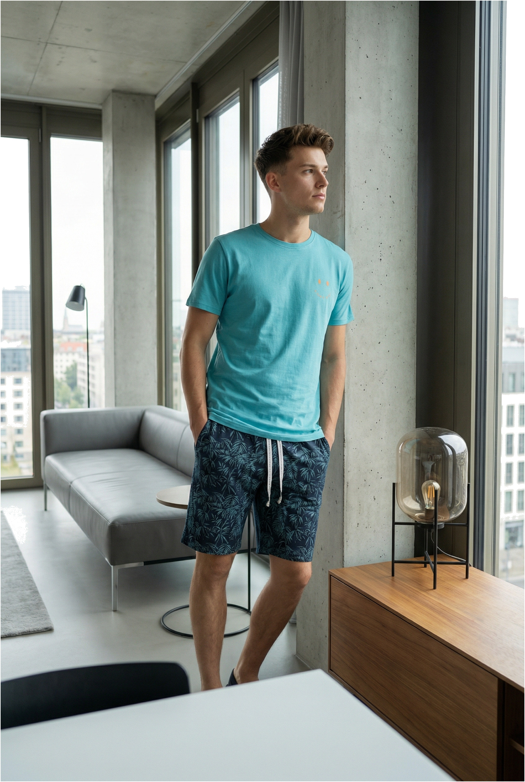 Der Phil & Co. Berlin Herren Pyjama verbindet modisches Design mit hohem Komfort. Das Shorty Set mit klassischem Rundausschnitt überzeugt durch moderne Prints und stilvolle Farbverläufe – perfekt abgestimmt auf die Frühjahr/Sommer-Saison.